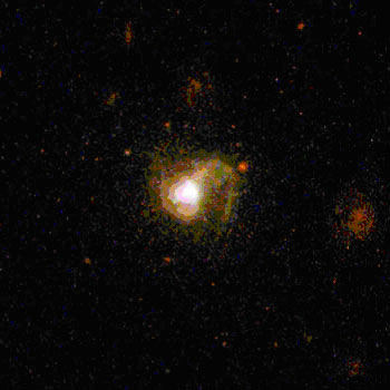 | 哈勃望远镜拍摄的星系POX 186照片。 星系中心是新生的蓝白色恒星 |